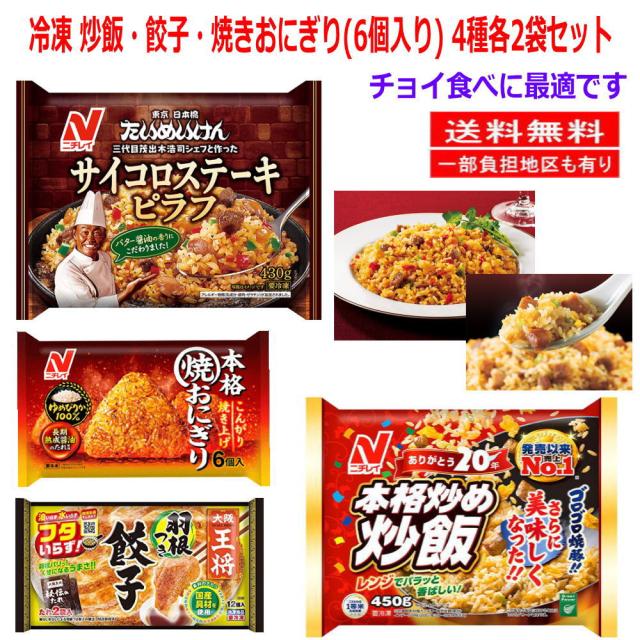 新着 冷凍食品 8袋セット ニチレイ 冷凍 炒飯 焼きおにぎり(6個入り)イートアンド 王将羽根つき餃子 4種 各2袋セット 関東圏送料無料