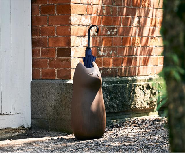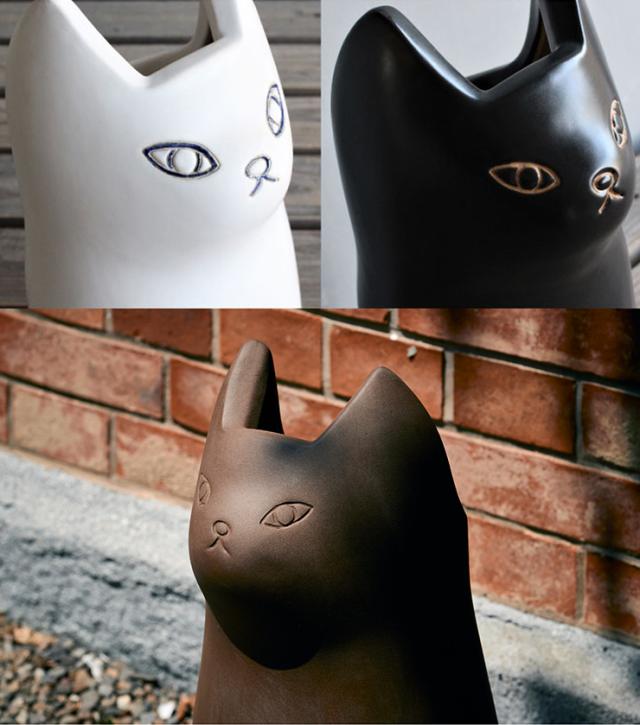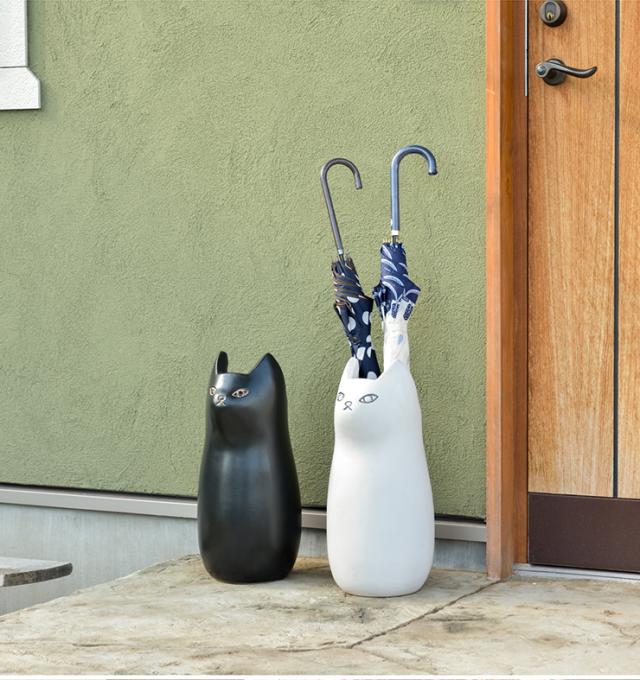 ネコ型傘立て CLY-12 3色対応 アンブレラスタンド 玄関収納 傘たて かさ立て 陶器 花瓶 屋外 スリム シンプル ガーデン