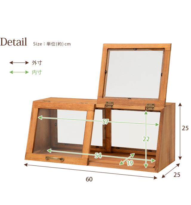 商品名 カウンター上ガラスケース MUD-6067 カラー ナチュラル、ダークブラウン、ウォッシュ メーカー保証期間 1年間 本体サイズ (約)幅60×奥行25×高さ25cm