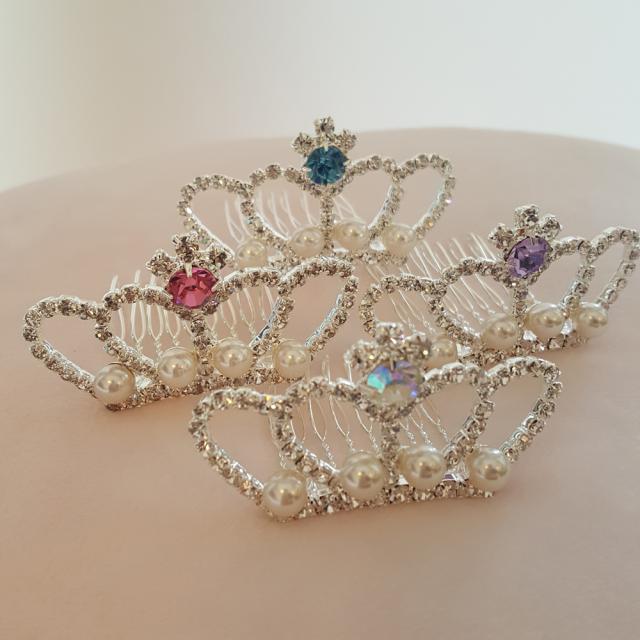 | 商品説明 | プリンセスティアラが、まだ無理なお子様用に、クラウンコ—ムです。 定番のオーロラ、ピンクに、お子様に大人気のブルー、パープルも揃えました。 |