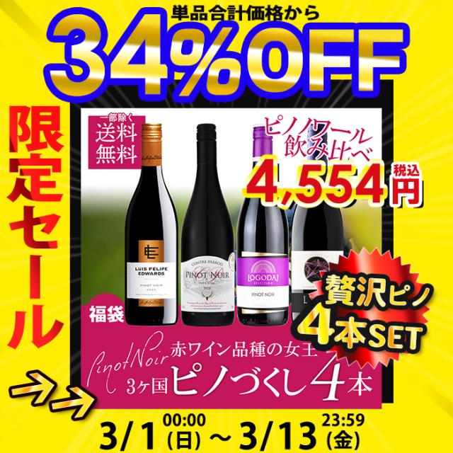 ワインセット ワイン ピノノワール 黒ブドウの女王 飲み比べ 赤ワイン 4本セット 単一品種のワインを味わおう 送料無料 一部除外 ミディアム ワインセット チリ ブルガリア フランス ピノ・ノワール 福袋