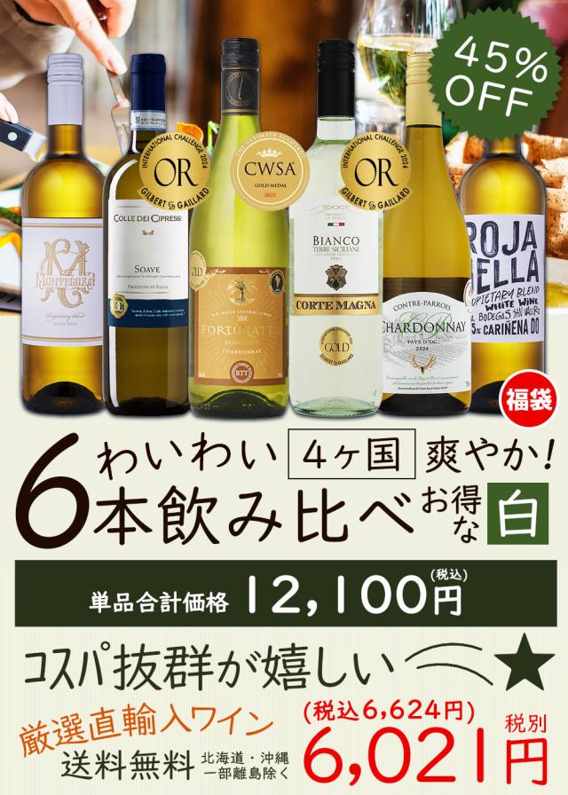ワイン ワインセット お買い得 白ワイン わいわい楽しめる 送料無料 一部除外 辛口 6本 飲み比べ ワイン 白 イタリアワイン チリワイン スペインワイン 金賞 福袋 【DN】