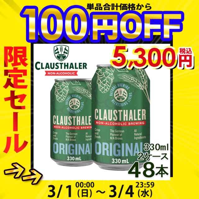 1本あたり113円 ノンアルコールビール クラウスターラー 330ml×48本 2ケース 送料無料 一部除外 ドイツ ドイツ産 ローアルコール ビール ローアル ノンアルコール ビアテイスト 飲料 ノンアル ビールテイスト ケース販売