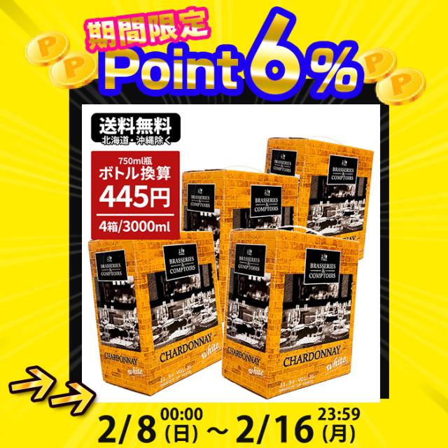 箱ワイン ワインセット 大容量 ブラッスリー・エ・コントワール シャルドネ 3000ml×4本 1ケースまとめ買い 送料無料 一部除外 ワイン スペイン 3L 紙パック bib 箱 ボックス BOX