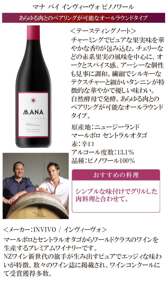 ワイン 赤ワイン マナ バイ インヴィーヴォ ピノノワール ニュージーランド 赤