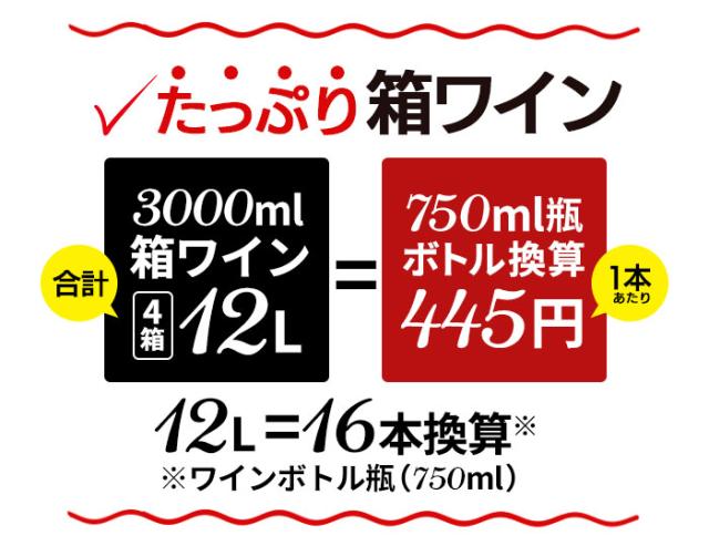 送料無料!大容量の紙パックワイン 3000ml×赤4個のまとめ買い!