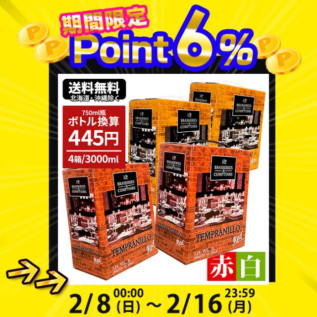 送料無料!大容量 紙パックワイン 3000ml×赤白4個のまとめ買い!