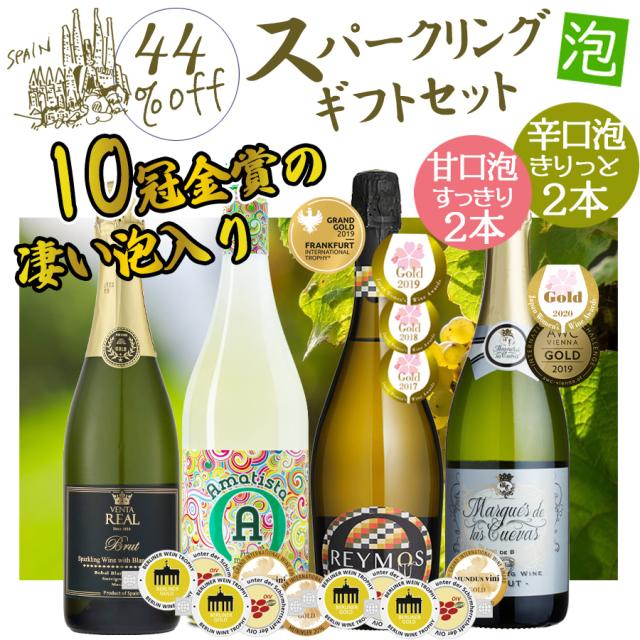 ワインセット プレゼントにピッタリ 甘口 辛口 スパークリングワイン 4本セット 送料無料 一部除外 スペインワイン ワインギフト スパークリング ギフト