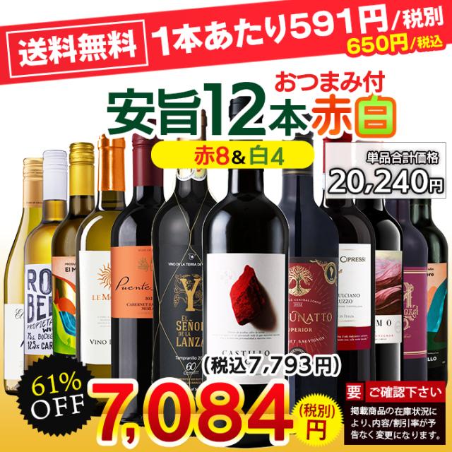 送料無料!お手頃バラエティ 1本あたり650円の赤&白ワインどちらも楽しめる12本セット!