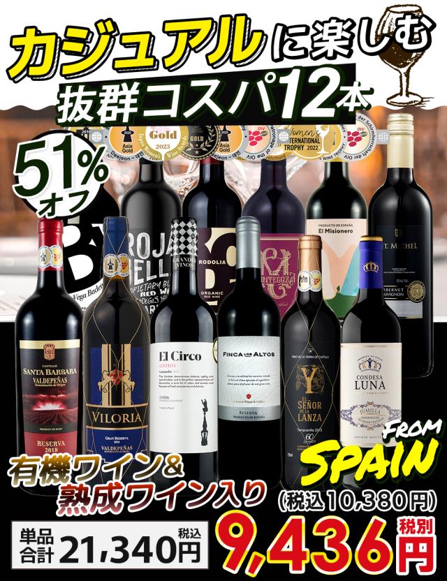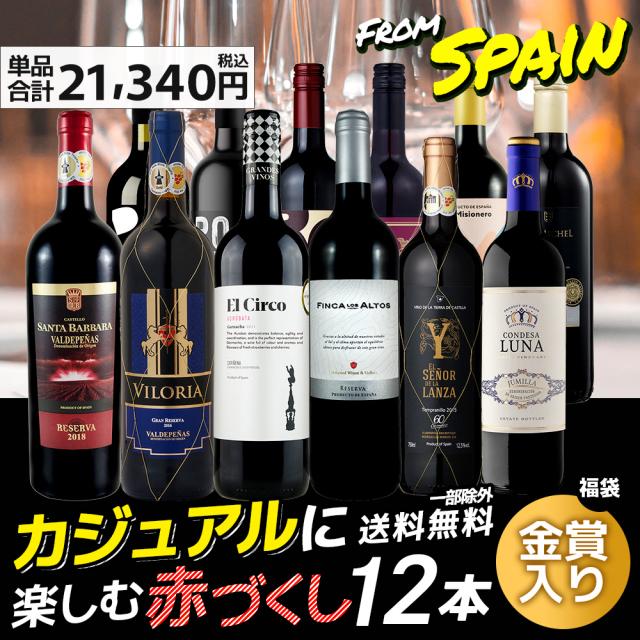 送料無料!金賞受賞ワイン入り!カジュアルなスペイン産 赤ワインづくし 12本飲み比べ バリューセット
