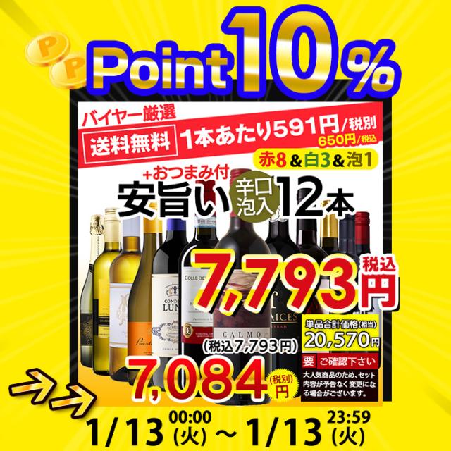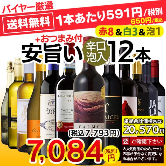 送料無料<1本あたり650円/税込>お手頃ワイン「赤・白・スパークリング」ミックス12本セット!