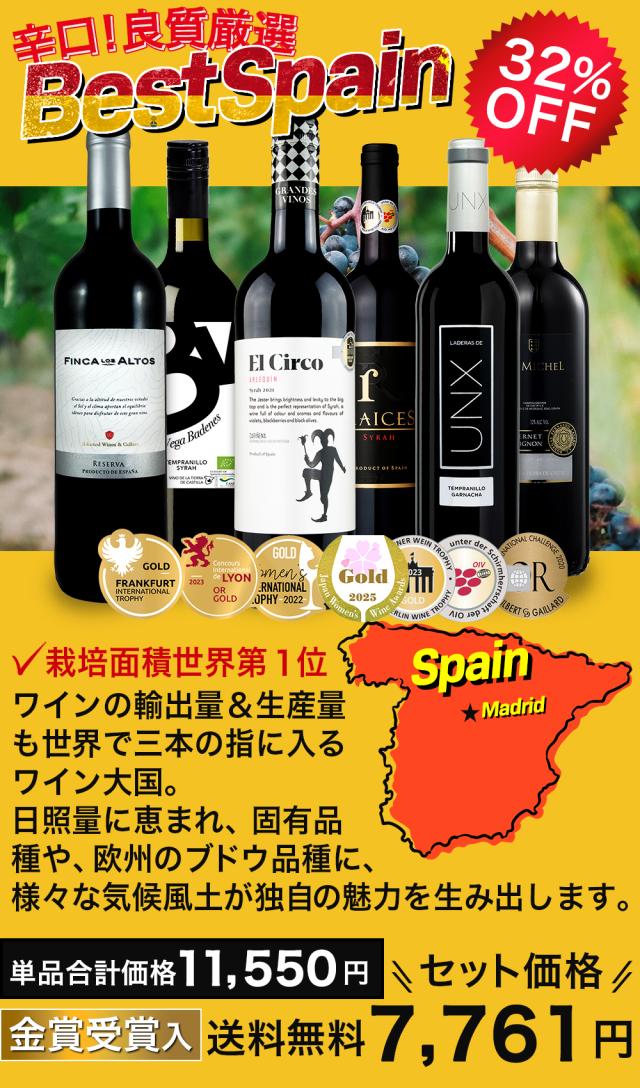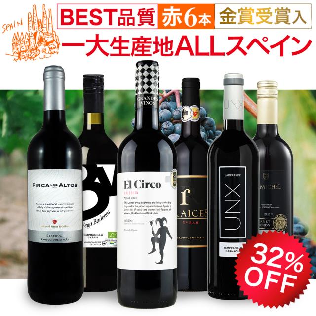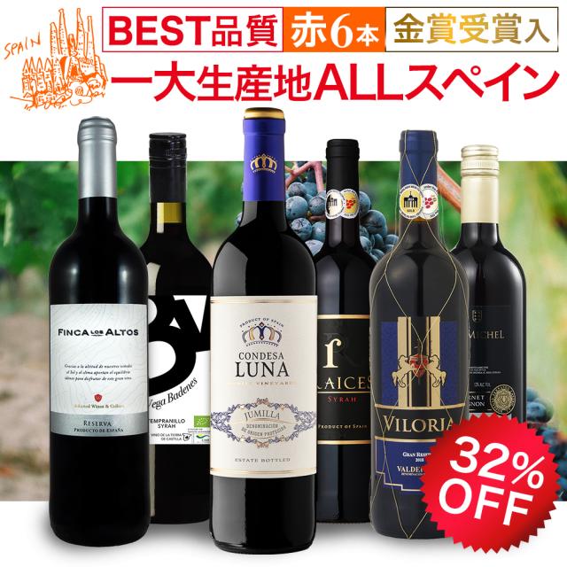 ワインセット ワイン お楽しみ 全てスペイン産 金賞入り 赤ワイン 6本セット 送料無料 一部除外 セット スペイン 赤 6本 辛口 金賞受賞