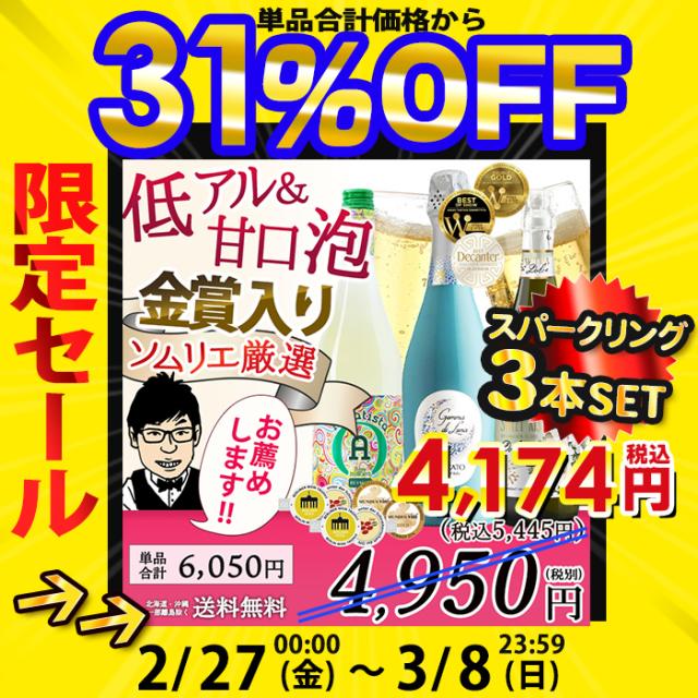 送料無料!ワインソムリエが厳選した甘口泡3本セット