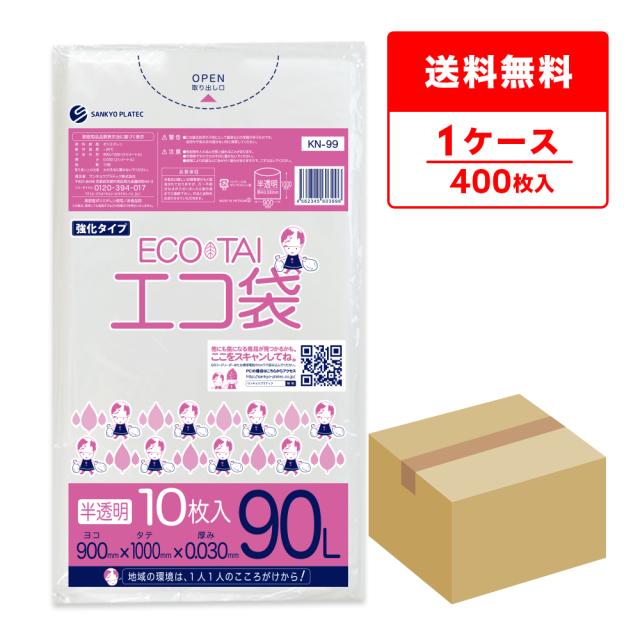 KN-99 ポリ袋 90リットル 0.030mm厚 半透明 10枚x40冊 / ゴミ袋 ごみ袋 送料無料