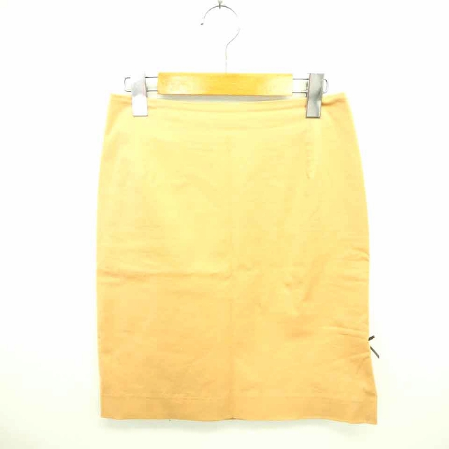 【中古】アンタイトル UNTITLED スカート タイト ひざ丈 リボン 薄手 サイドジップ 綿 コットン 1 ベージュ 薄茶