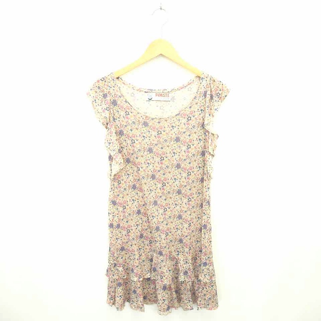 【中古】フェアステ FORSTE ワンピース 膝下丈 花柄 薄手 半袖 02 ピンク ブルー 青 /TT37 レディース