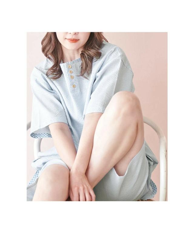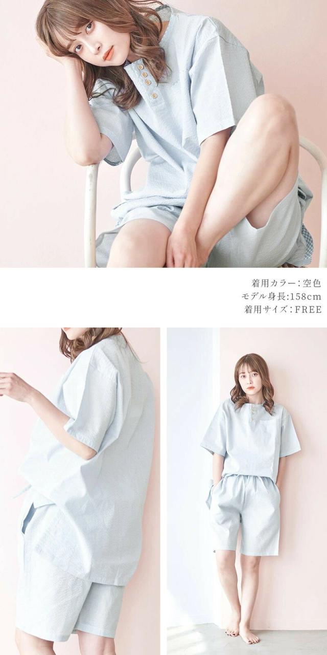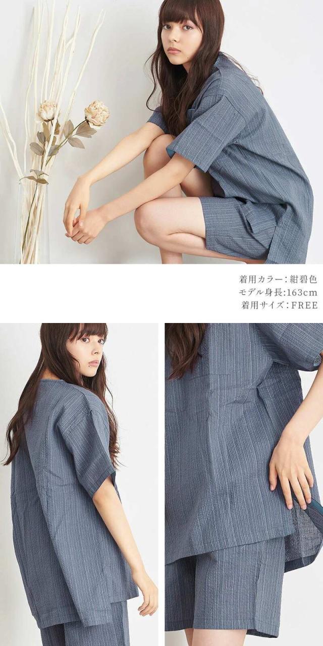 【送料無料】甚平 レディース しじら織り 涼しい オーガニックコットン 綿 ヘンリーネック フリーサイズ 女の子 可愛い おしゃれ パジャマ じんべえ じんべい 和服 セットアップ 上下セット 夏 プレゼント ギフト 即日発送 [dl-078-581lady]