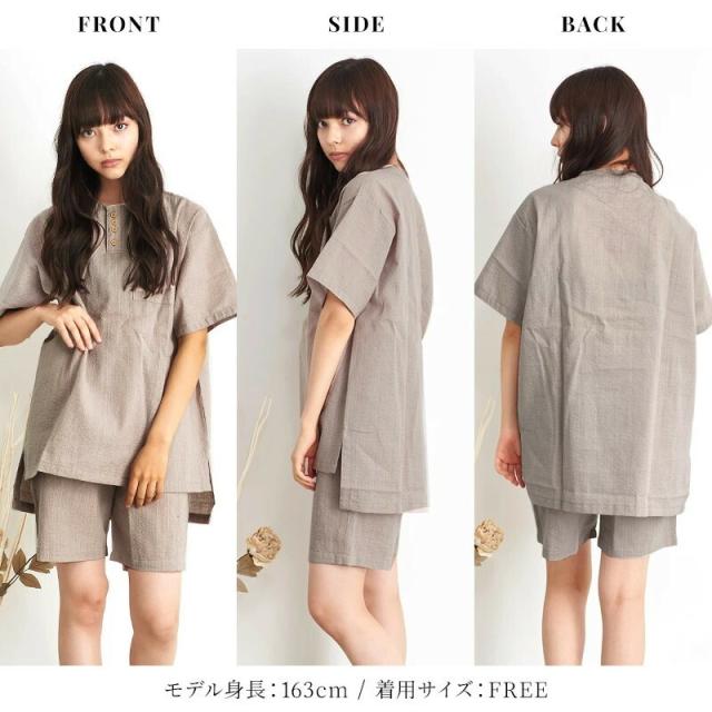 甚平 レディース 上下 セットアップ しじら織り 涼しい フリーサイズ ヘンリーネック オーガニックコットン 綿100% ルームウエア ルームウェア 部屋着 パジャマ おうち時間 甚兵衛 じんべえ じんべい 和服 浴衣 楽ちん おしゃれ 可愛い かわいい 母の日 プレゼント ギフト 女性用 送料無料配送について