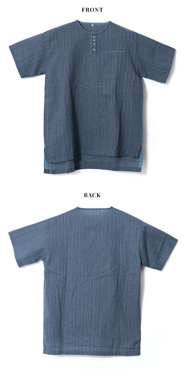 新しいデザインとして上衣をヘンリーネックにし、着脱も容易にした伝統を革新的に守る甚平となっております。
