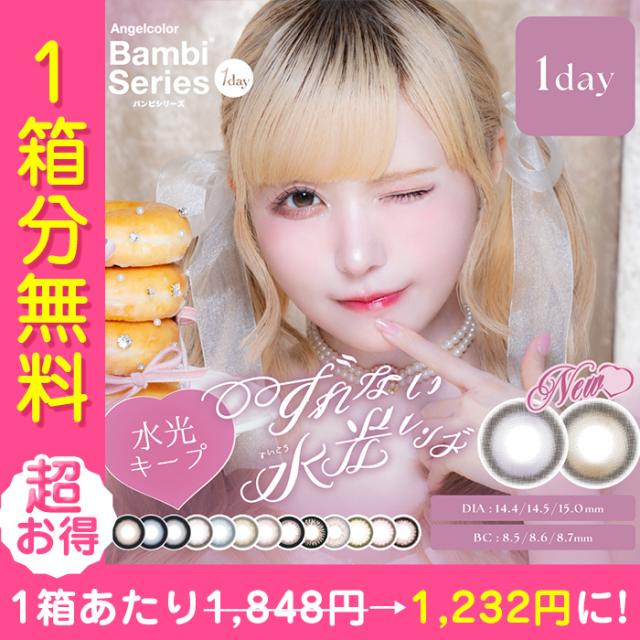 【1箱分無料クーポン】カラコン ワンデー 度あり エンジェルカラー バンビシリーズ 益若つばさ DIA14.4mm 14.5mm 15.0mm BC8.5 BC8.6 BC8.7 1箱10枚入り 水光 軸固定 回らない UVカット ブルー グレー ブラウン ピンク 大きめ 可愛い 高度数 フチあり フチなし 太フチ