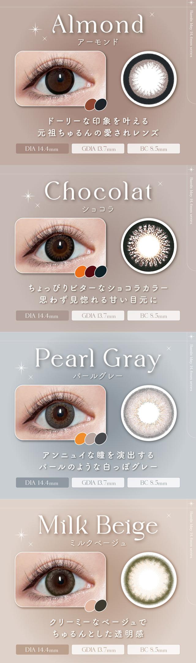 着色直径:14.5mm(ハニームーン・ブルーベリームーン・セサミムーン) 13.7mm(その他カラー)