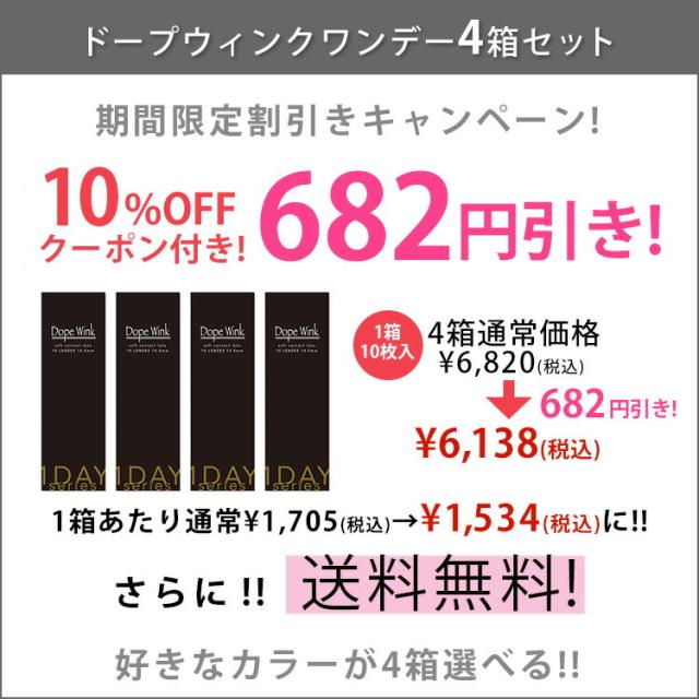 【10%OFF】カラコン ワンデー 度あり みちょぱ 10%OFF 4箱セット 池田美優 ドープウィンク 1箱10枚入り 14.5mm BC8.6 セット ハーフ 1日使用 【送料無料】【10】