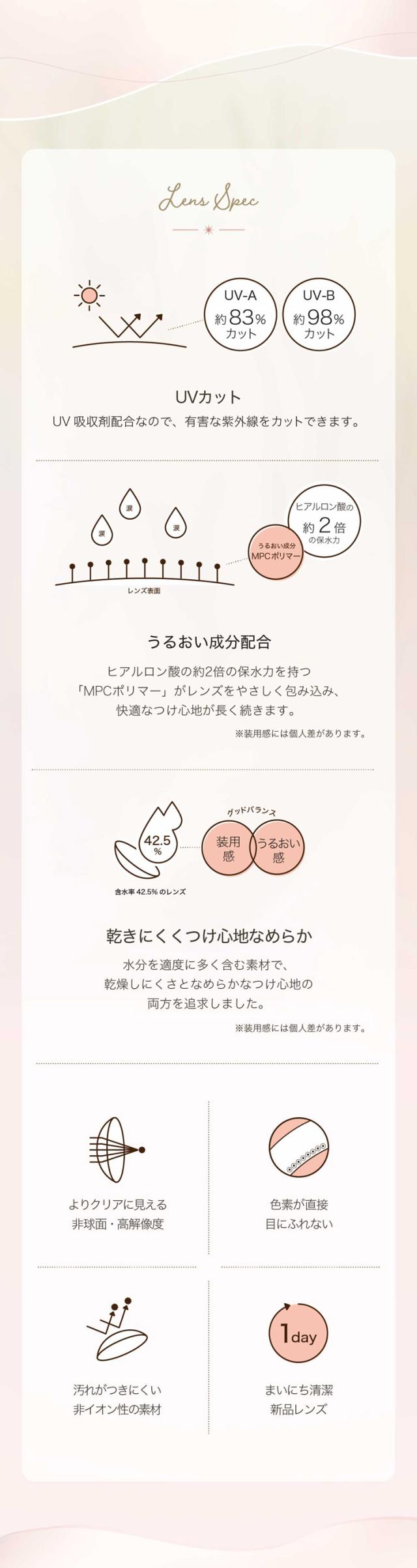 うるおい成分配合UVカット カラーコンタクト 1日使用