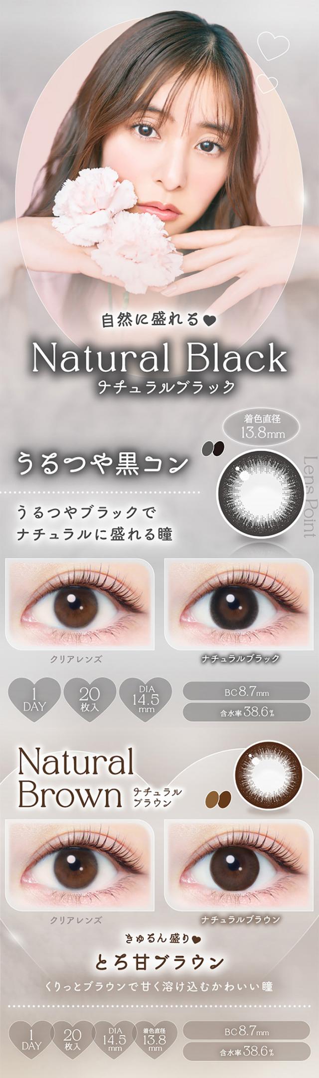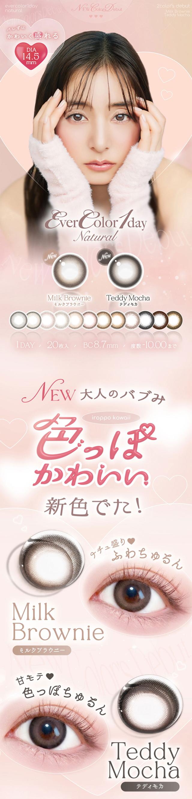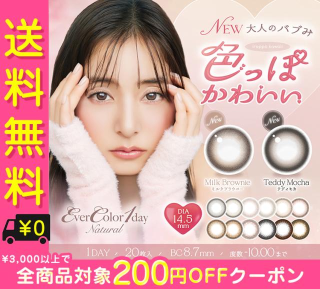 カラコン ワンデー 度あり エバーカラーevercolor ワンデーナチュラル 新木優子 1箱20枚入り 14.5mm BC8.7 (1day ナチュラル シャンパン) ブラウン/ブラック 高度数 ハイパワー
