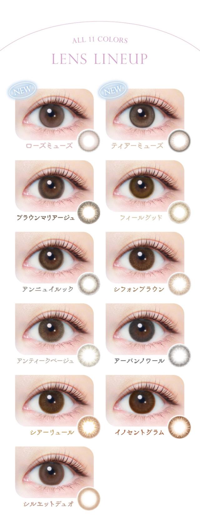 (ティアーミューズ、フィールグッド、アンニュイルックのみ13.6mm)