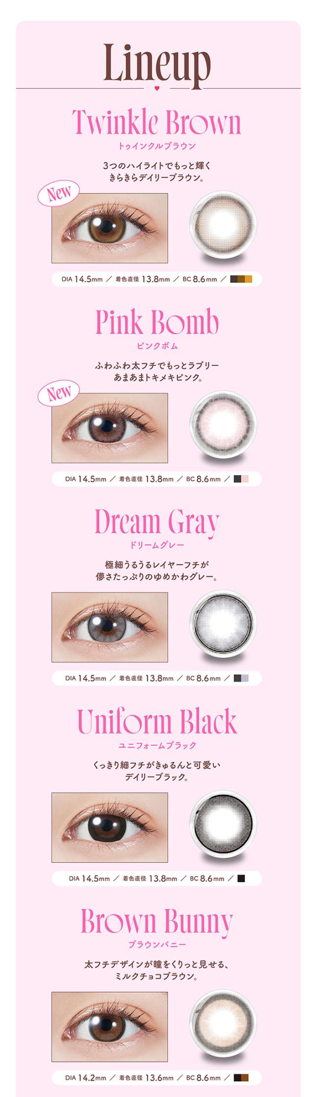 (トィンクルブラウン、ピンクボム、ドリームグレー、ユニフォームブラックのみ14.5mm)