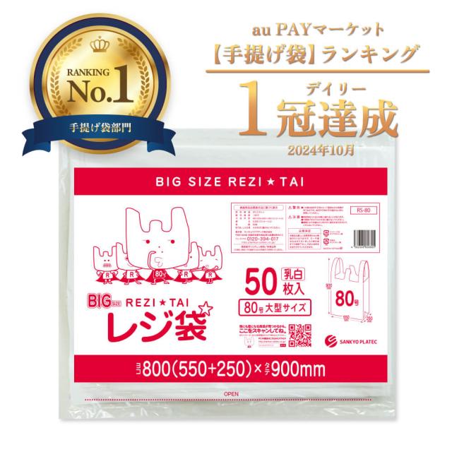 【バラ販売】レジ袋 80号 西日本80号 乳白 厚手タイプ 0.025mm厚 50枚 RS-80bara / 大型レジ袋 ポリ袋 ビニール袋 手提げ袋 取っ手付きゴミ袋 買い物袋 持ち手付き サンキョウプラテック