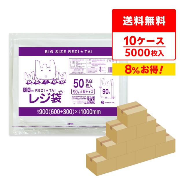 【まとめて10ケース】レジ袋 90号 西日90号 乳白 厚手タイプ 0.025mm厚 50枚x10冊x10箱 RS-90-10 / 送料無料 大型レジ袋 ポリ袋 ビニール袋 手提げ袋 取っ手付きゴミ袋 買い物袋 持ち手付き サンキョウプラテック