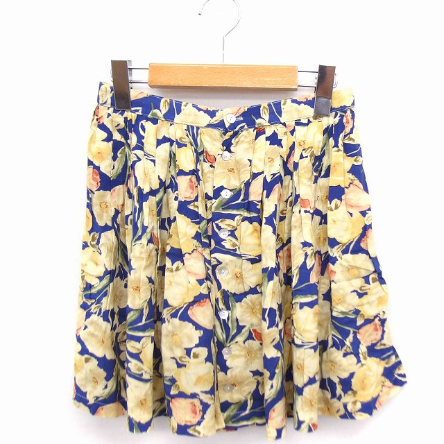 【中古】ミンクピンク MINK PINK スカート 花柄 ギャザー ミニ XS ブルー 青 /FT28 レディース