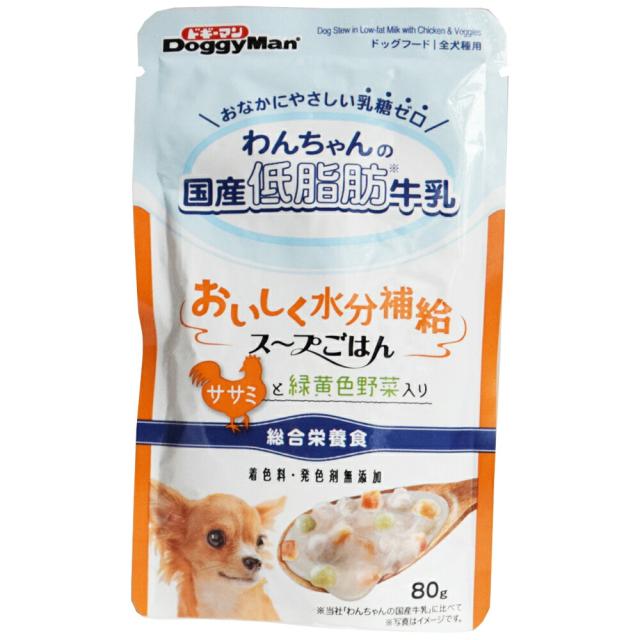 (まとめ買い)ドギーマン わんちゃんの国産低脂肪牛乳スープごはん ササミと緑黄色野菜入り 80g 犬用フード 〔×30〕 【北海道・沖縄・離島配送不可】