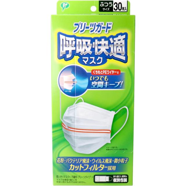 ピップ プリーツガード 呼吸快適マスク ふつうサイズ 個別包装 30枚入りX5箱