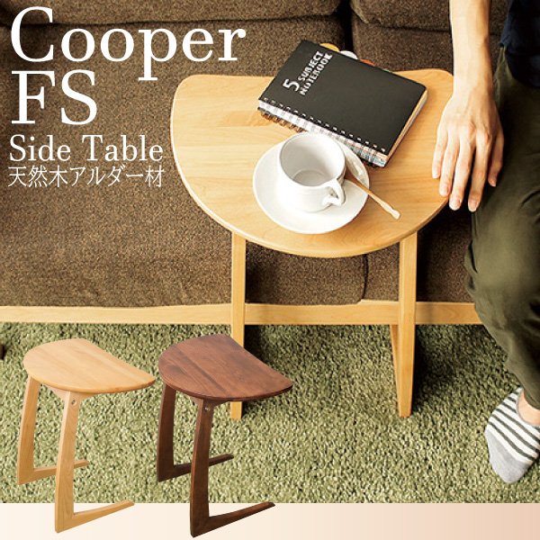 サイドテーブル 半円テーブル 木製 おしゃれ 天然木 フジシ クーパー FS 幅45cm ナチュラル ブラウン アルダー 無垢材 ソファ ベッド ナイトテーブル スリム