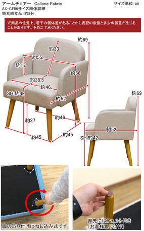 ◆北欧テイストがおしゃれなアームチェアーColloneファブリック◆