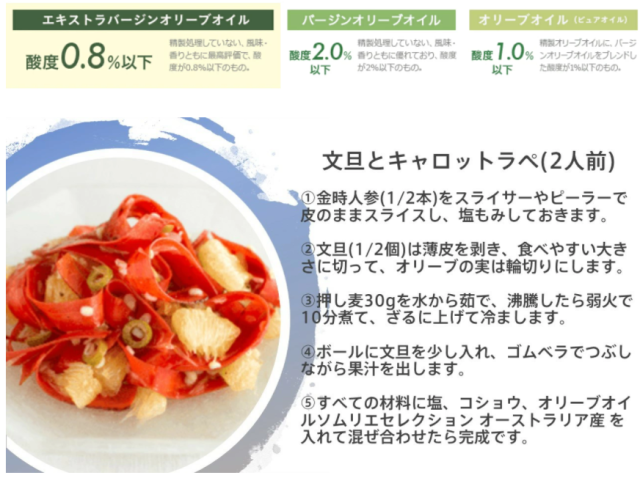 オリーブオイル(ピュアオリーブオイル)と違って化学処理を行わないため、
