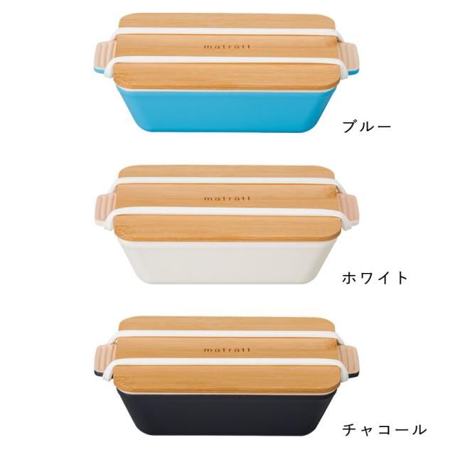 ナチュラルな竹の蓋と白いバンドでしっかり密閉!グラタン皿風の持ち手付きランチボックス「matratt」です。