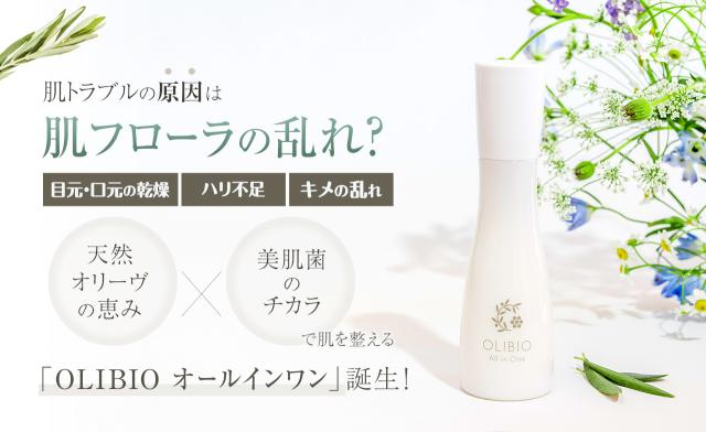 OLIBIOオールインワンは、天然オリーヴの恵み×美肌菌(乳酸菌)のチカラで肌フローラを整えるオールインワンジェル。