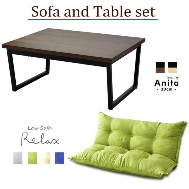 ソファベッド セット リクライニング 1人掛け 2人掛け コーヒーテーブル センターテーブル ローテーブル アイアン ウッド リラックスFAB アニータ80cm
