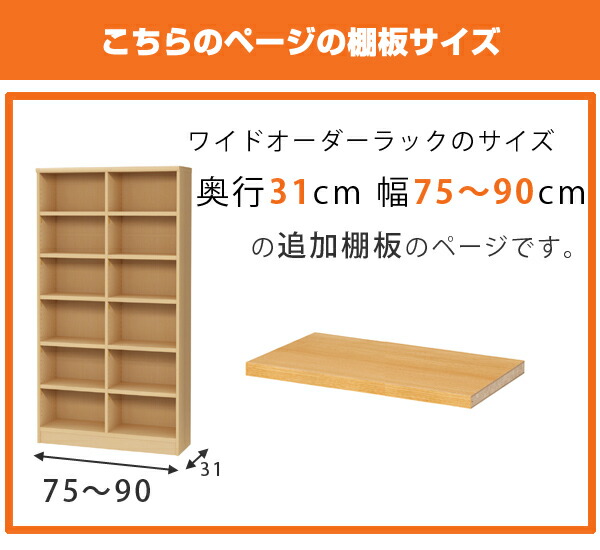オーダー本棚用 追加タフ棚板 幅75-90cm 奥行き31cm ( 収納棚 書棚 本棚 オーダー 書庫 書籍 ブックシェルフ リビング収納 漫画収納 子供部屋 オーダーメイド 国産 フリーラック )