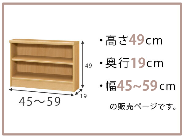 オーダー本棚 標準棚板タイプ 幅45-59cm 奥行19cm 高さ49cm ( 本棚 壁面収納 オーダー オーダーメイド 収納棚 日本製 書棚 ラック フリーラック コミック 文庫本 )