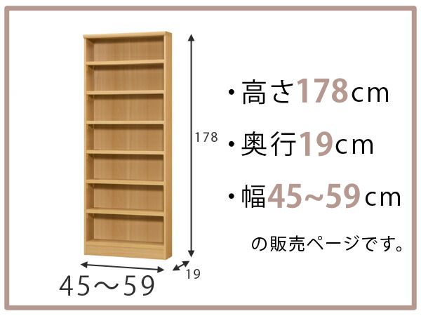オーダー本棚 標準棚板タイプ 幅45-59cm 奥行19cm 高さ178cm ( 本棚 壁面収納 オーダー オーダーメイド 収納棚 日本製 書棚 ラック フリーラック コミック 文庫本 )