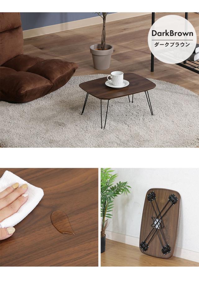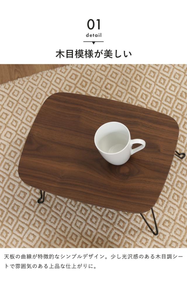 木目の美しいシンプルなデザインの折れ脚ローテーブルです。