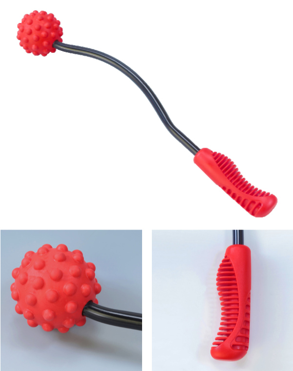 | 重量感がある凸凹ボール 大きめで重量感がある凸凹したボールです。 | 握りやすいグリップ カーブのあるハンドルは手にフィットします。 |