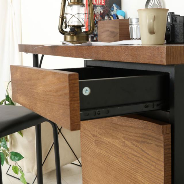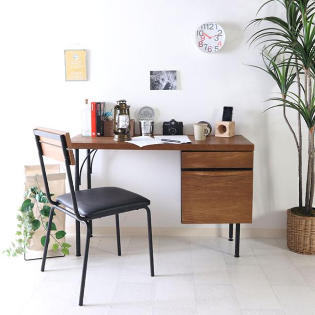 オーク突板とブラックスチールの組み合わせがオシャレでスタイリッシュなアンティーク調のデスクです。