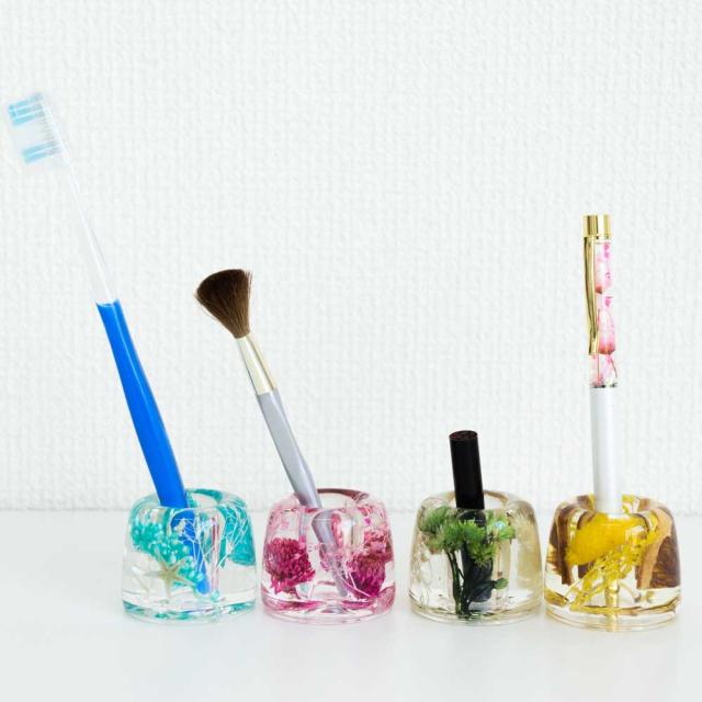 ハーバリウム ペンスタンド 1つ / 歯ブラシスタンド ペン スタンド ブラシ 化粧筆 チーク アイブロウ おしゃれ 受付 結婚式 ペン立て