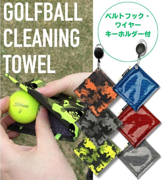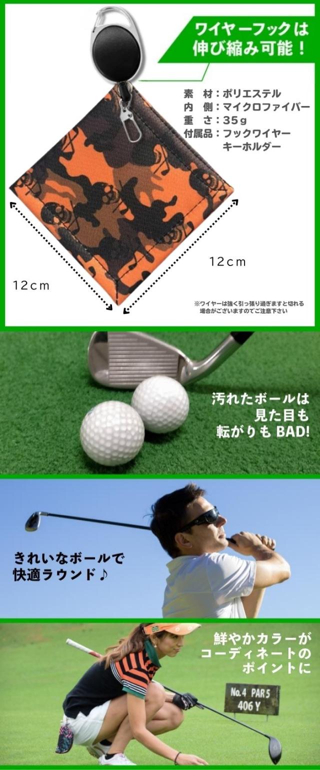 ゴルフ ボール拭き ゴルフボール タオル スカル 迷彩 カラビナ ワイヤー付き 便利 グッズ 2WAY クロス マイクロファイバー デザイン ボール クリーニング ゴルフ用品 小物 メンズ レディース おしゃれ プレゼント 父の日 母の日 クリスマス コンペ 景品