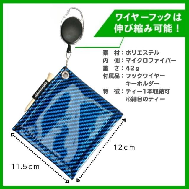 伸縮可能なワイヤーフック&カラビナ付きで、ベルトやバッグに装着していつでも手軽に使えます。スイングの合間にもサッと手に取れる快適さで、ストレスなくプレーに集中できます。